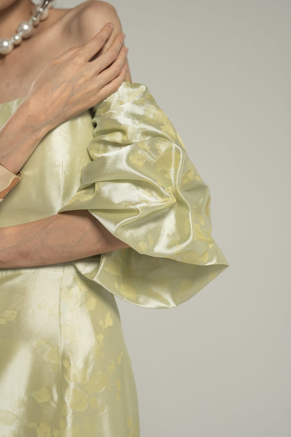 Évoquant la lumière d’un matin précieux, cette création en soie naturelle se distingue par son éclat subtil et sa fluidité noble.