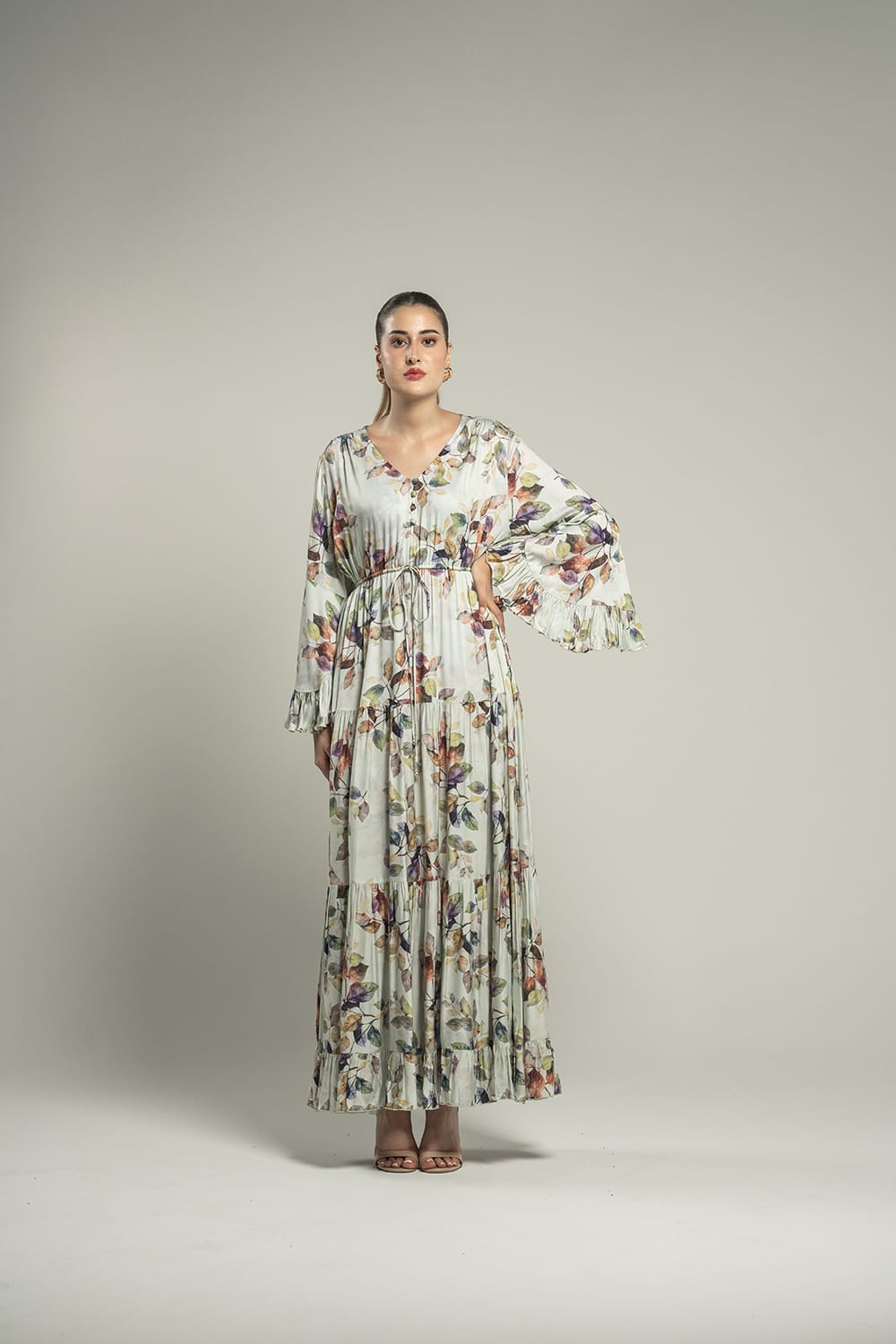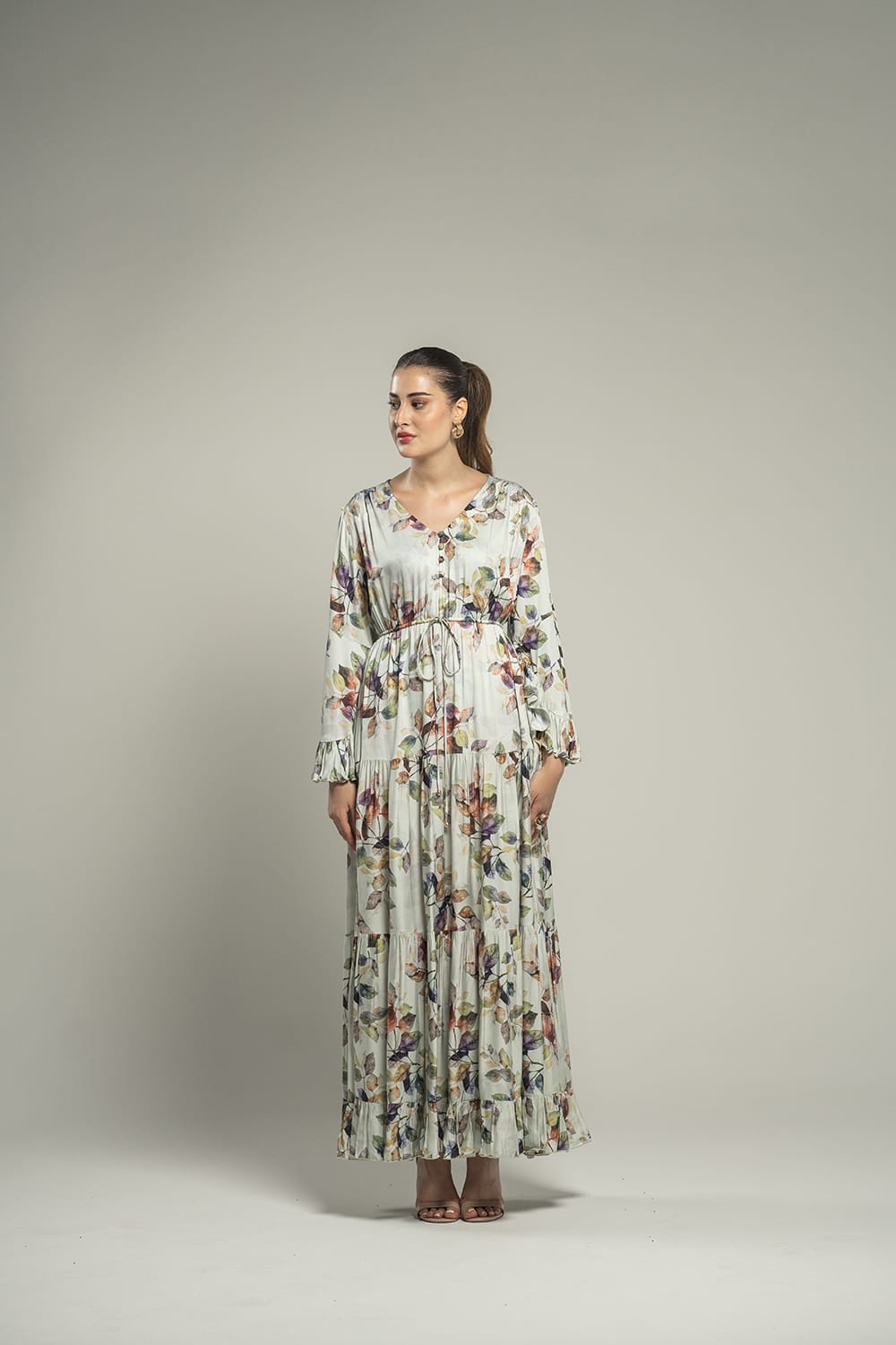 Évoquant la poésie d’un jardin en fleurs, cette robe longue séduit par sa légèreté et son imprimé raffiné. Sa coupe fluide et cintrée à la taille enveloppe la silhouette d’une élégance naturelle, parfaite pour allier confort et sophistication au quotidien comme lors d’occasions privilégiées.